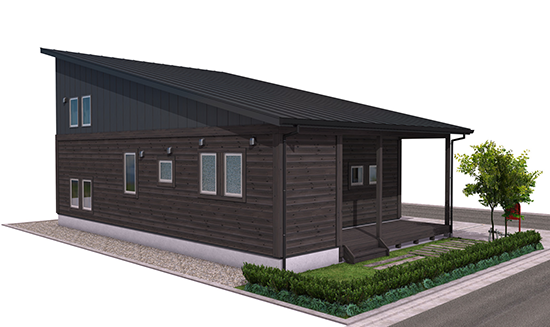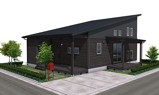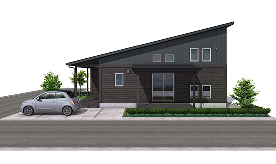平屋ベースエッジの効いた片流れのフォルムフォルムは、季節ごとの太陽の光や