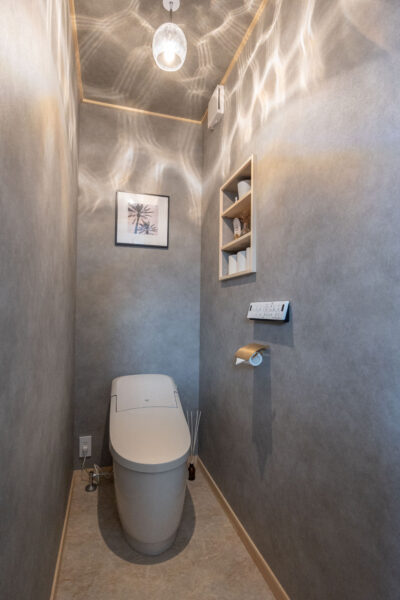 トイレの照明には波模様がかわいい「アクアランプ」を使用しました!